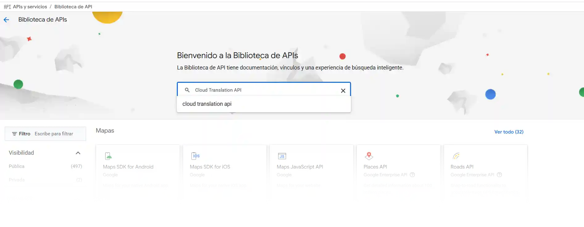 - Haz clic en el resultado que dice «Cloud Translation API».